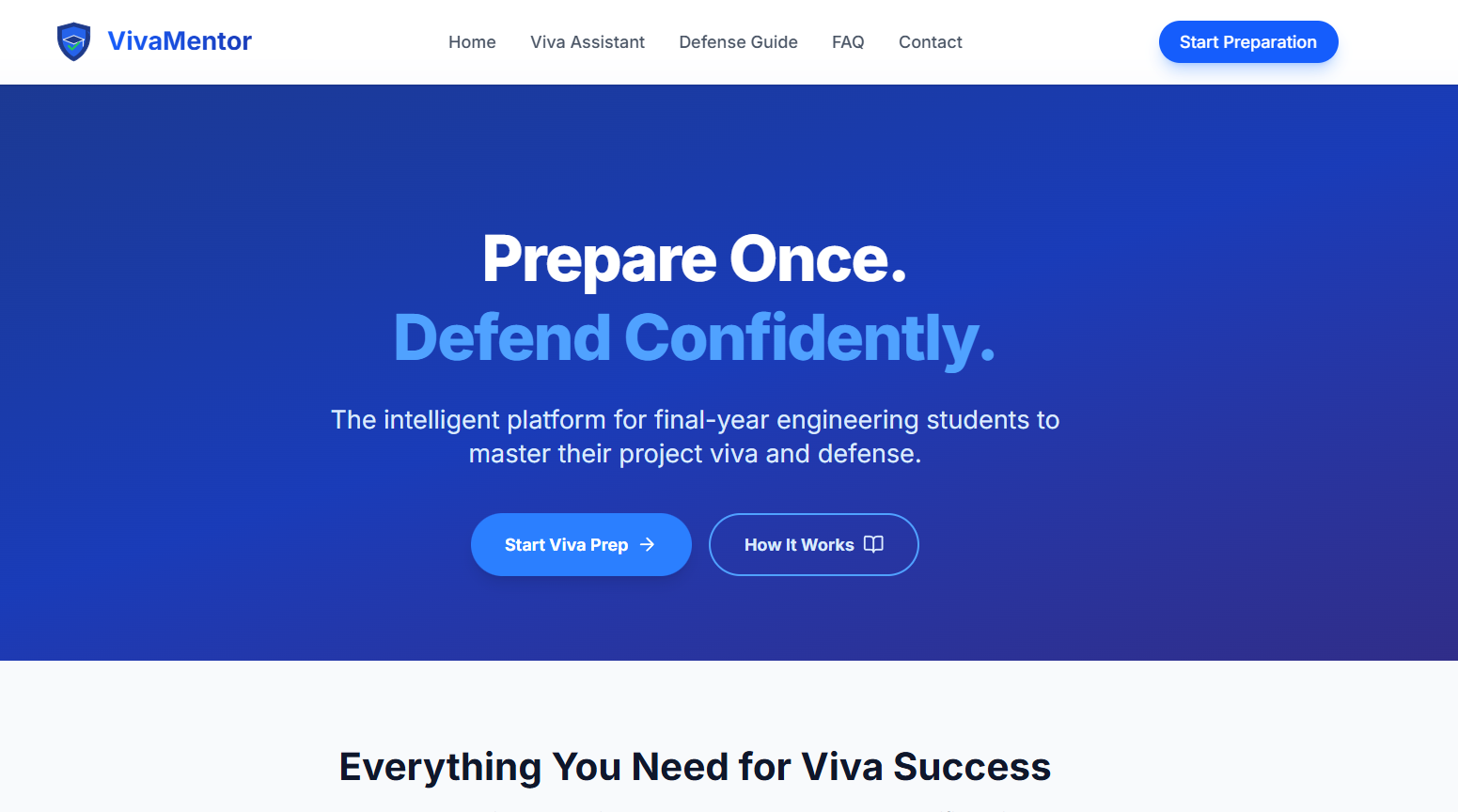 VivaMentor is a focused learning platform that helps students confidently prepare for project reviews and viva examinations.